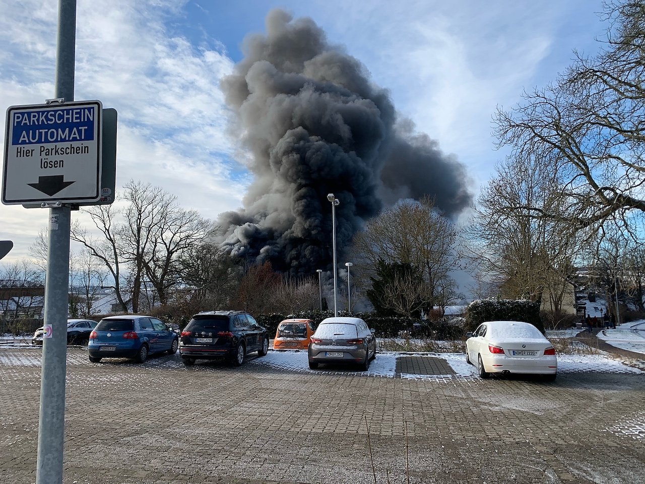 Vor Ort sind die Feuerwehren mit allen Kräften mit dem Brand beschäftigt und versuchen derzeit ein Übergreifen der Flammen auf andere Gebäude zu verhindern.