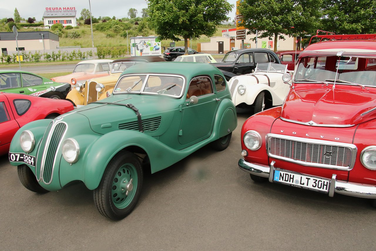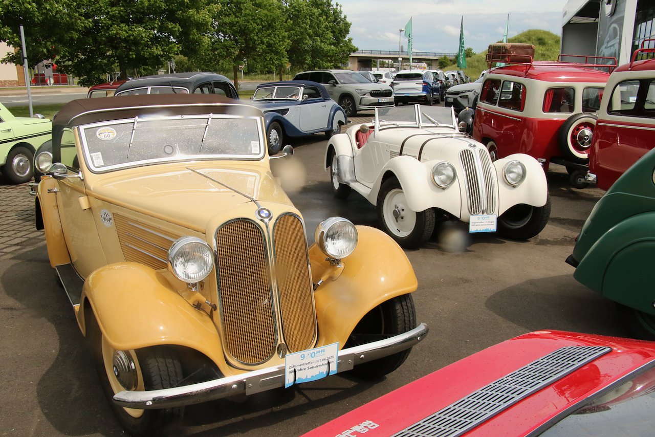 Nach etwas über einer Stunde Ausfahrt trudelten die historischen Fahrzeuge nach und nach am Zielpunkt ein, dem Autohaus Liebe in Sondershausen.