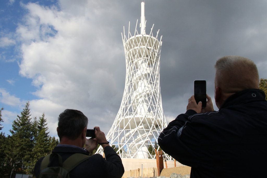 Der extra große Hexenbesen schafft es an der Spitze auf 70 Meter und ist damit einen Tick höher als der ebenfalls recht neue Aussichtsturm am Torfhaus. Ein Umstand, der bei den Eröffnungsreden für ein paar Zoten gut war, denn ursprünglich war der Nordthüringer Turm nur auf 55 Meter Höhe geplant und hätte damit den Kürzeren gezogen.