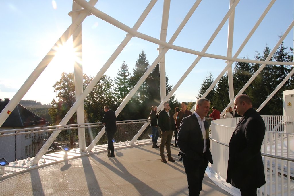 Dennoch gab es zur Eröffnung Lob von allen Seiten, von einem Juwel für unser Heimatland und einer Attraktion für das Grüne Herz Deutschlands spricht Ministerpräsident Mario Voigt. Man habe etwas geschaffen, was es so noch nie gegeben habe, meint Landrat Matthias Jendricke. Außerdem zeige der Bau auch, dass die Thüringer Politik noch Handlungsfähigkeit zeigen und man sich auf Absprachen verlassen könne, denn angefangen hatte man den Besenbau noch unter der alten Regierung und dem damaligen Minister Wolfgang Tiefensee, der zwar inzwischen außer Dienst ist, heute aber trotzdem geladen war. Die Schwierigkeiten wolle man heute vergessen und stattdessen Danke sagen, so der Landrat abschließend, allen voran die Bauleute hätten Großartiges geleistet.
