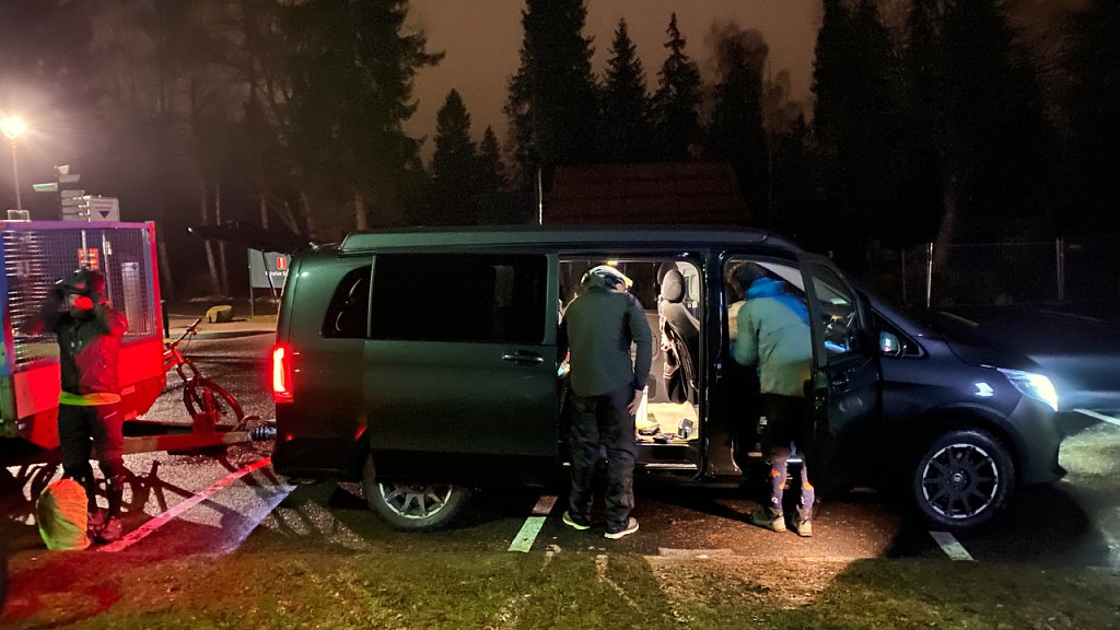 Es war wärmer als erwartet, knapp über null Grad und es regnete nur leicht. Von abgesägten Bäumen und kargen Steinfeldern, wie 2019, war nichts zu sehen. Es war ziemlich dunkel und die Helmlampen beleuchteten nur das direkte Umfeld. Die auf dem einen Galeriebild zu sehenden Baumstümpfe sind eher der Bildbearbeitung geschuldet als den tatsächlichen Lichtverhältnissen.