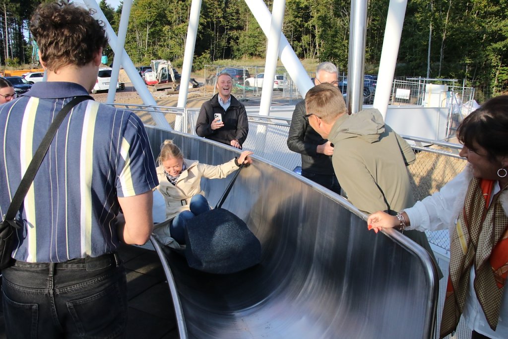 Dennoch gab es zur Eröffnung Lob von allen Seiten, von einem Juwel für unser Heimatland und einer Attraktion für das Grüne Herz Deutschlands spricht Ministerpräsident Mario Voigt. Man habe etwas geschaffen, was es so noch nie gegeben habe, meint Landrat Matthias Jendricke. Außerdem zeige der Bau auch, dass die Thüringer Politik noch Handlungsfähigkeit zeigen und man sich auf Absprachen verlassen könne, denn angefangen hatte man den Besenbau noch unter der alten Regierung und dem damaligen Minister Wolfgang Tiefensee, der zwar inzwischen außer Dienst ist, heute aber trotzdem geladen war. Die Schwierigkeiten wolle man heute vergessen und stattdessen Danke sagen, so der Landrat abschließend, allen voran die Bauleute hätten Großartiges geleistet.